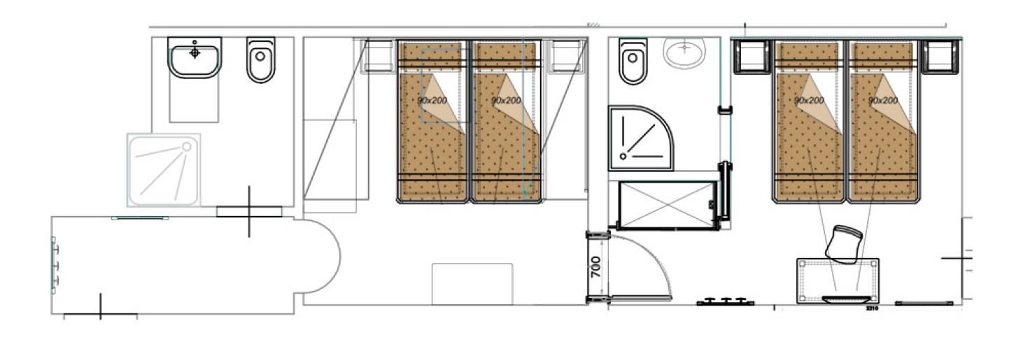 Camere per famiglie molto spaziose, circa 30 mq. Tutte le camere dispongono di due vani separati, dotati di un letto matrimoniale e di max. 5 letti singoli. Una delle camere per famiglie è su due livelli. Siamo al secondo piano del rifugio, con balcone con vista sul Sassopiatto e sul Sassolungo. Tutte le camere dispongono di due bagni con doccia. Sono camere per non fumatori.